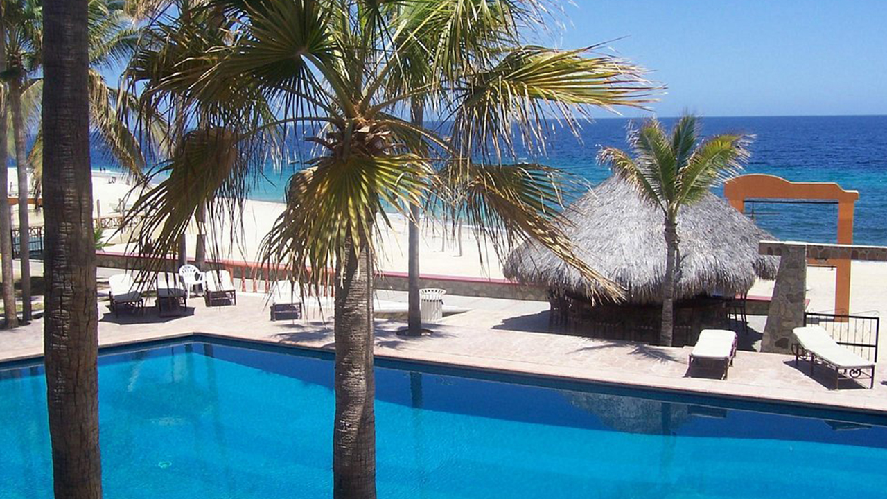In addition to its beachfront setting, Hotel Playa del Sol features an outdoor swimming pool — a perfect place to cool off, lounge, and soak up the Baja sun.
